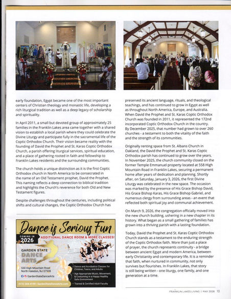 David the Prophet & St. Karas Church featured in Franklin Lakes Living Magazine